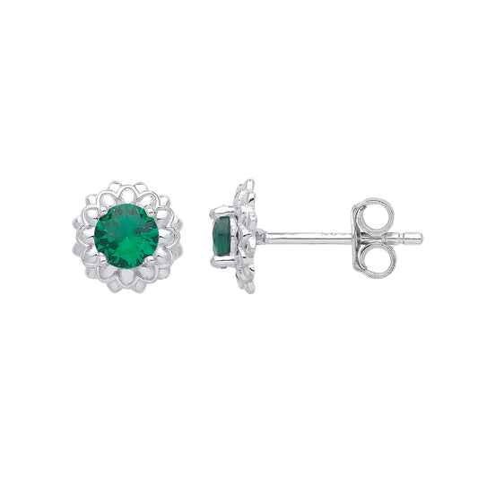 Silver Cubic Zirconia Emerald Cluster Stud Earrings