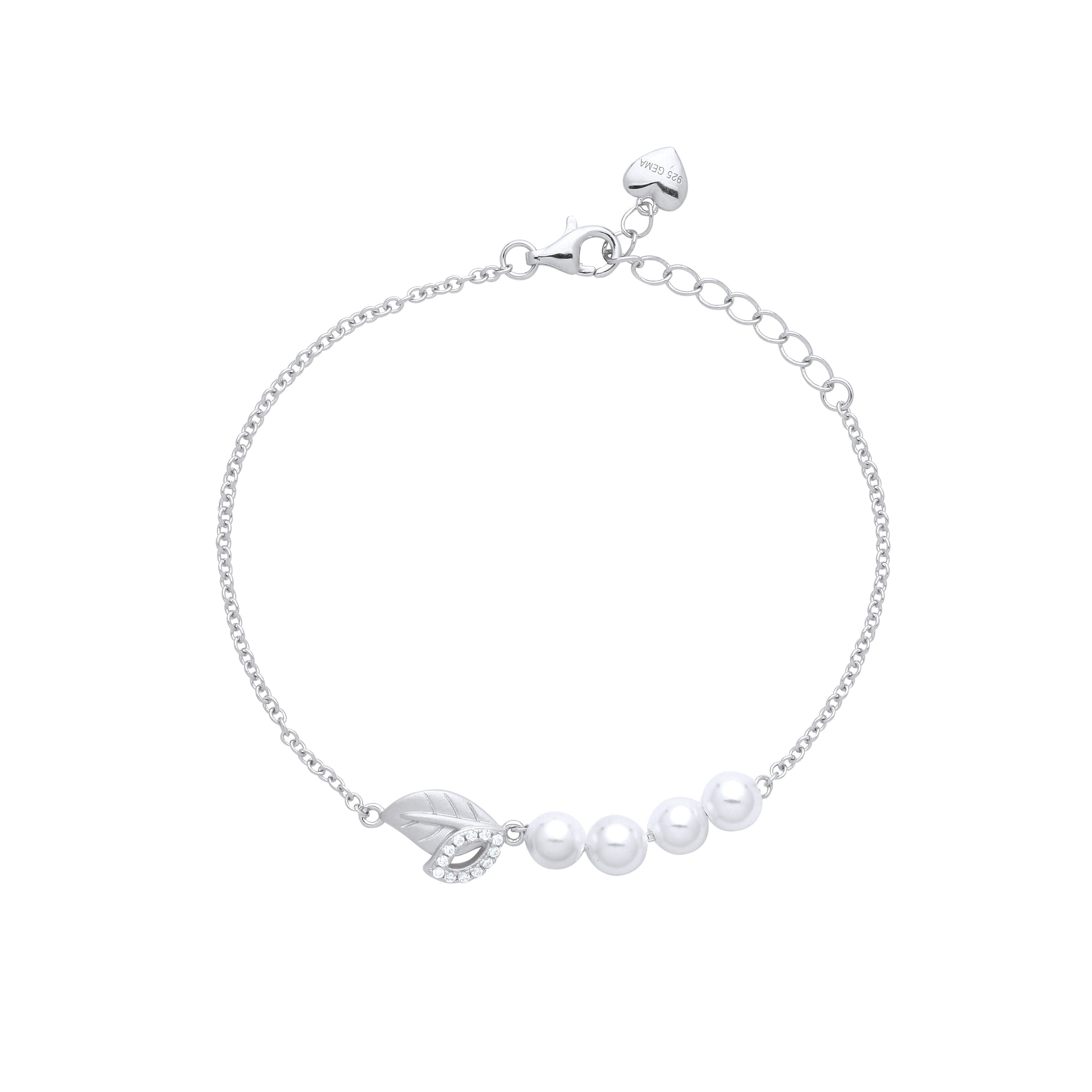 Adjustable Silver CZ Leaf & Pearl Fancy Bracelet