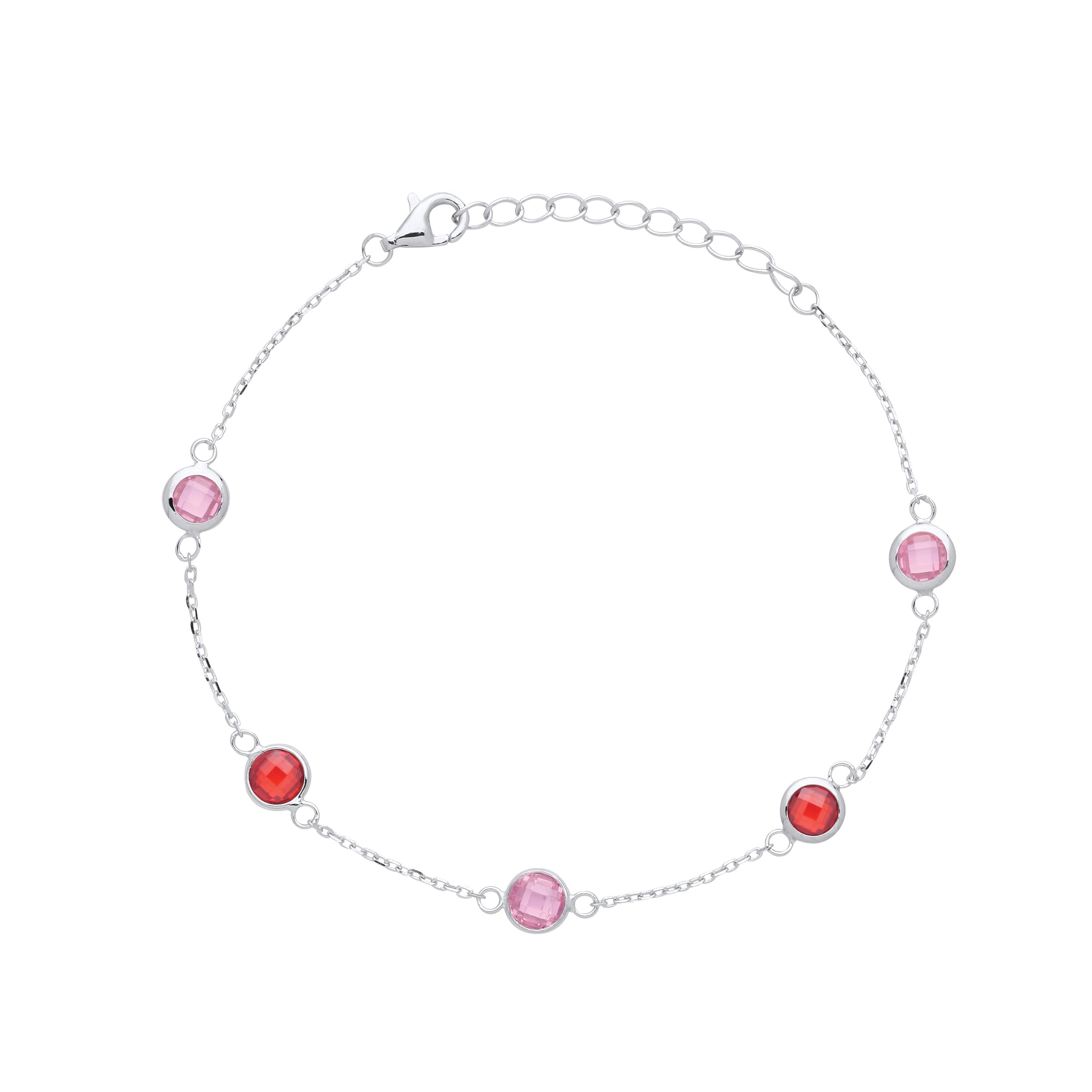 Adjustable Silver Ladies Pink & Garnet CZ Dainty Bracelet