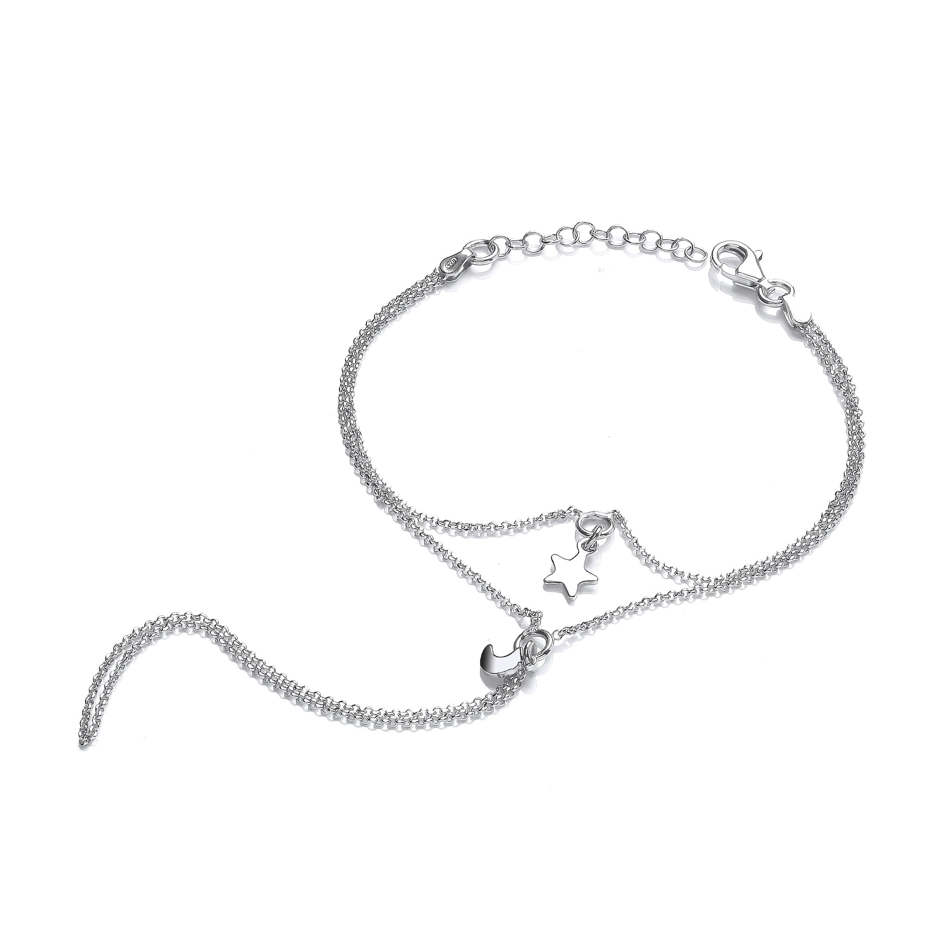 Adjustable Silver Star & Moon Chain Bracelet And Connected Ring
