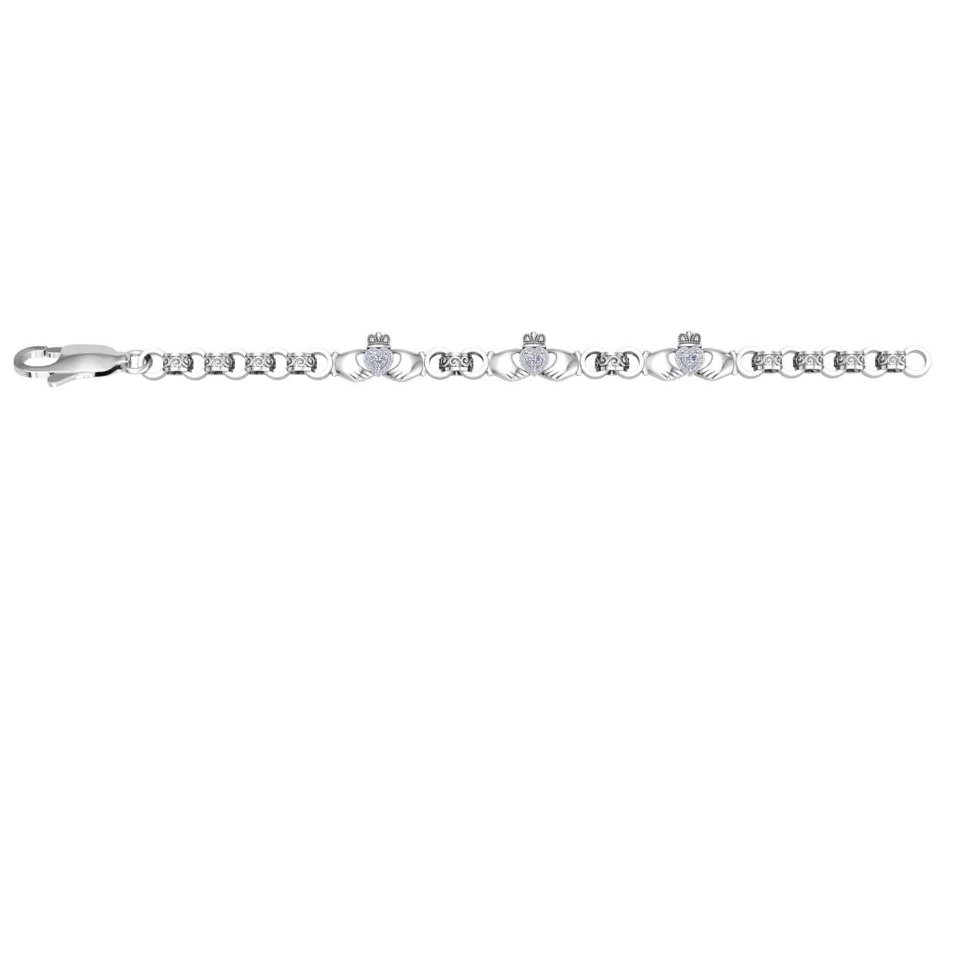 Children's Silver PT Plate CZ Claddagh 5.5" Curb Bracelet