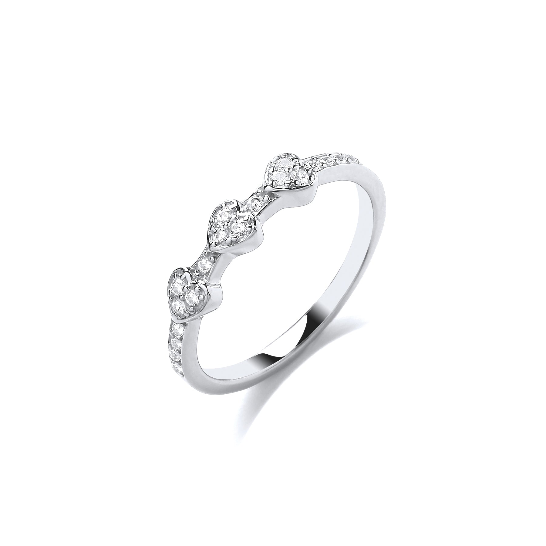 Fashion 925 Sterling Silver CZ Three Hearts Fancy Ring