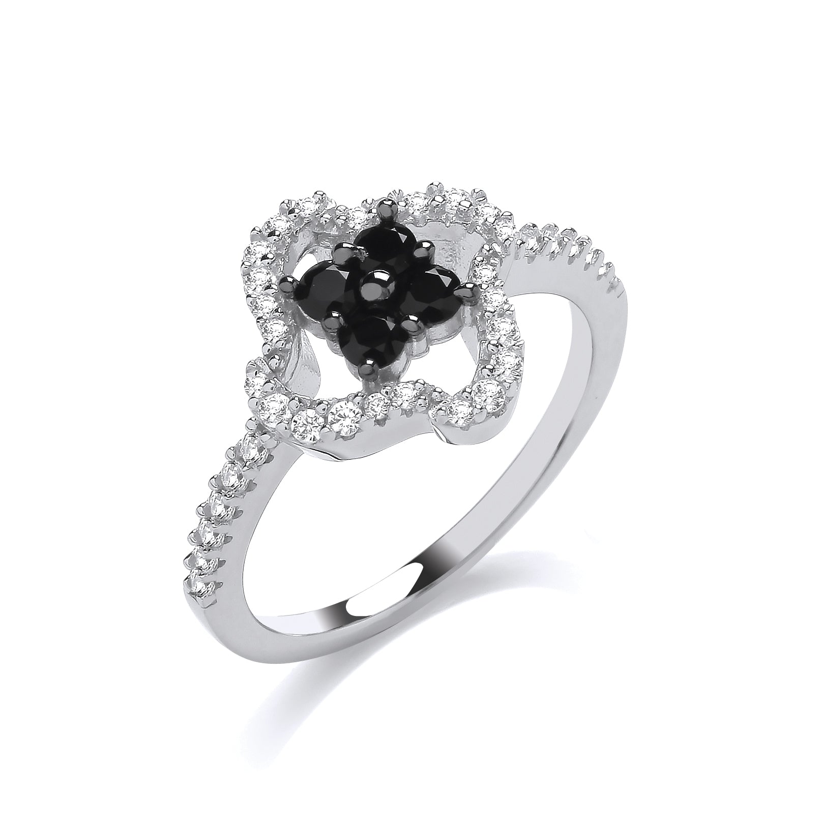 Fashion Silver CZ & Black CZ Flower Fancy Ring