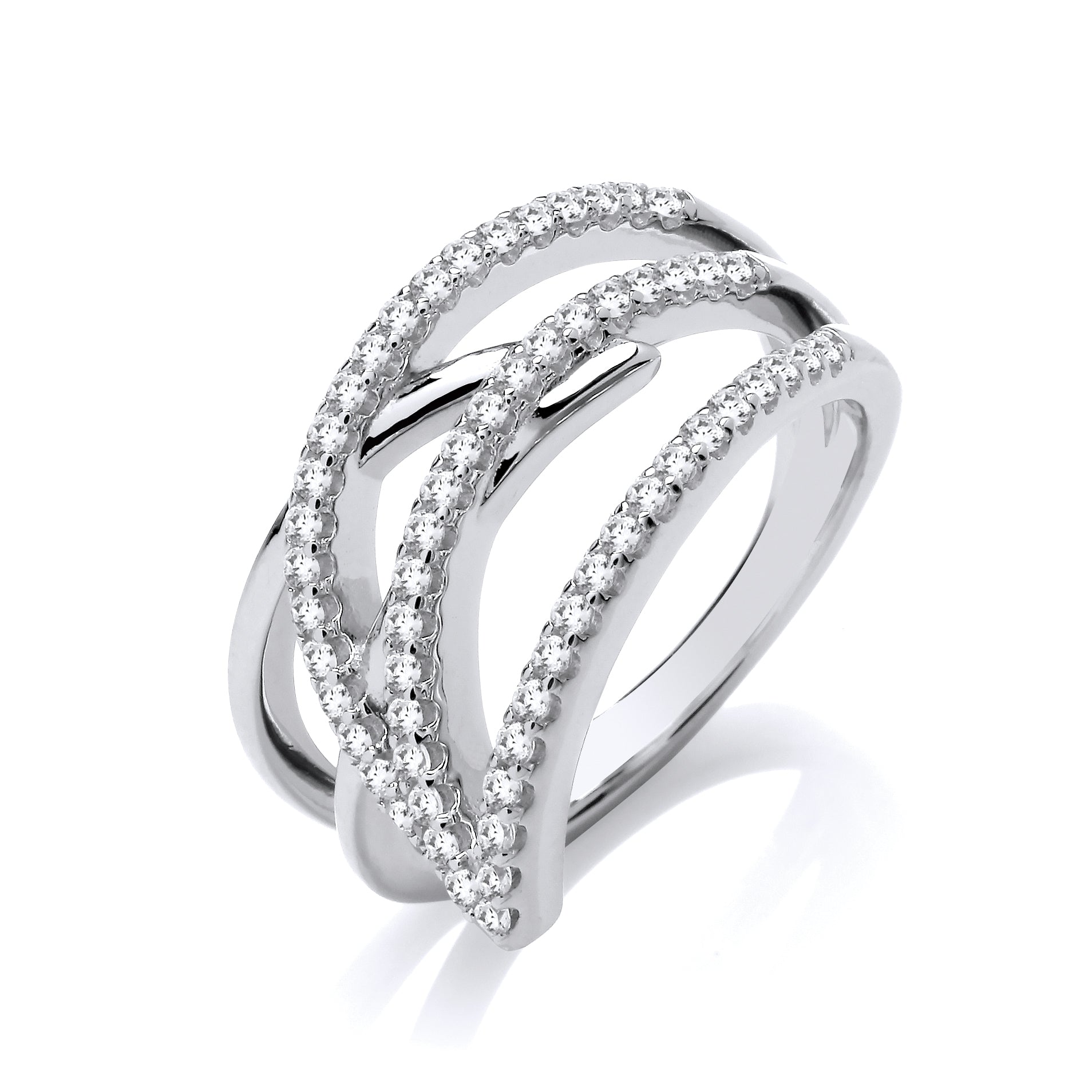 Fashion Silver CZ Petal Crossover Fancy Ring