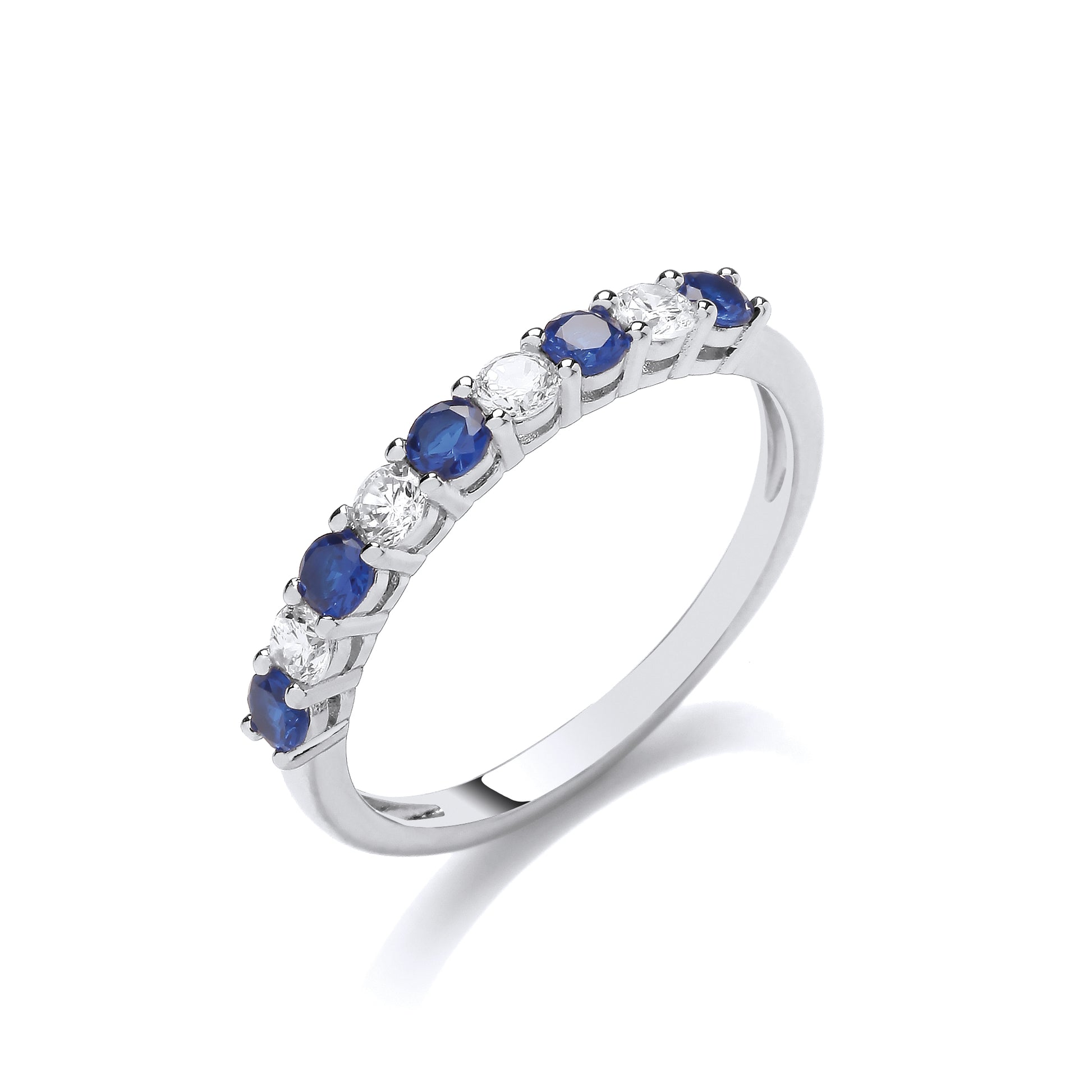 Fashion Silver CZ & Sapphire Half Eternity Ring