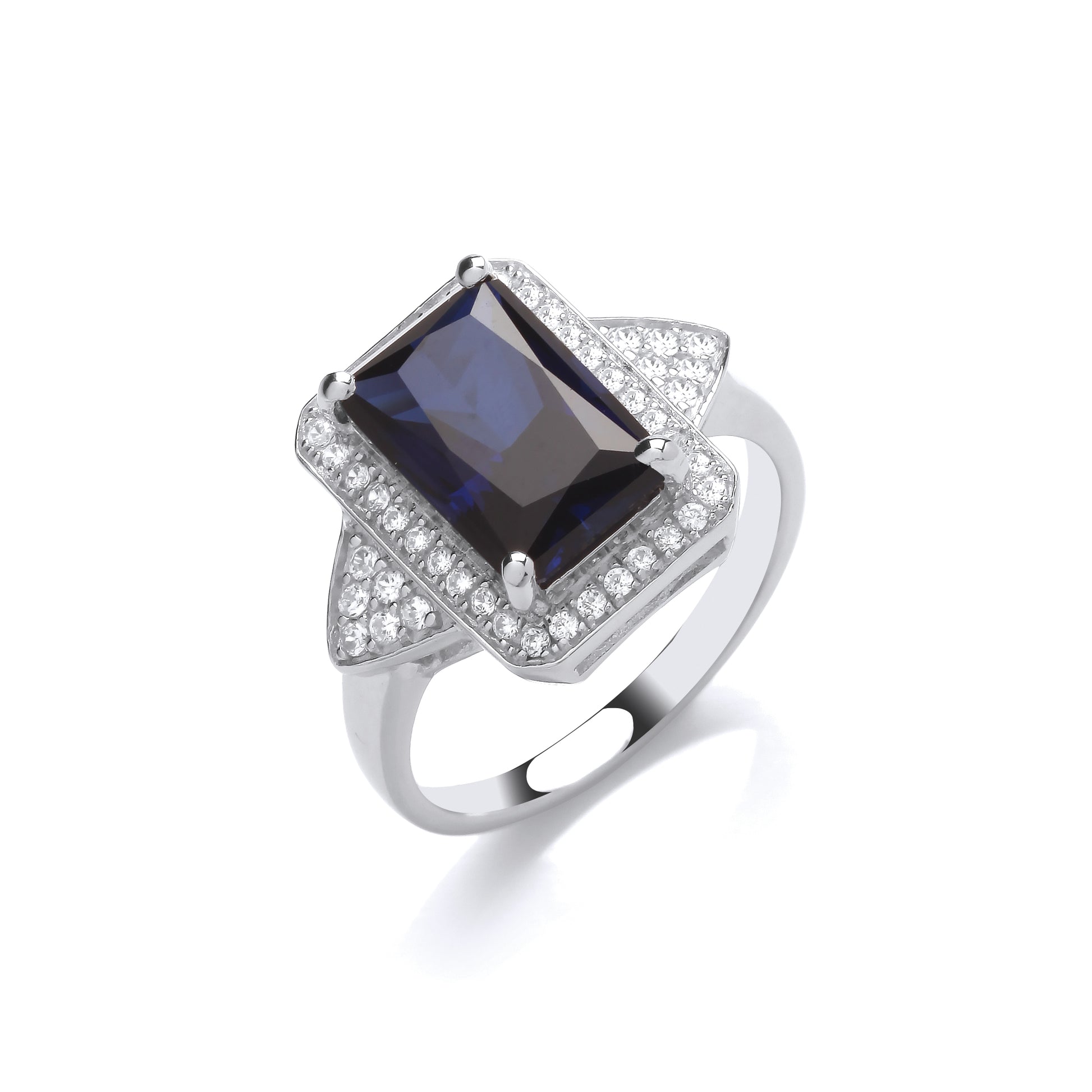 Fashion Silver CZ & Sapphire Ladies Ring
