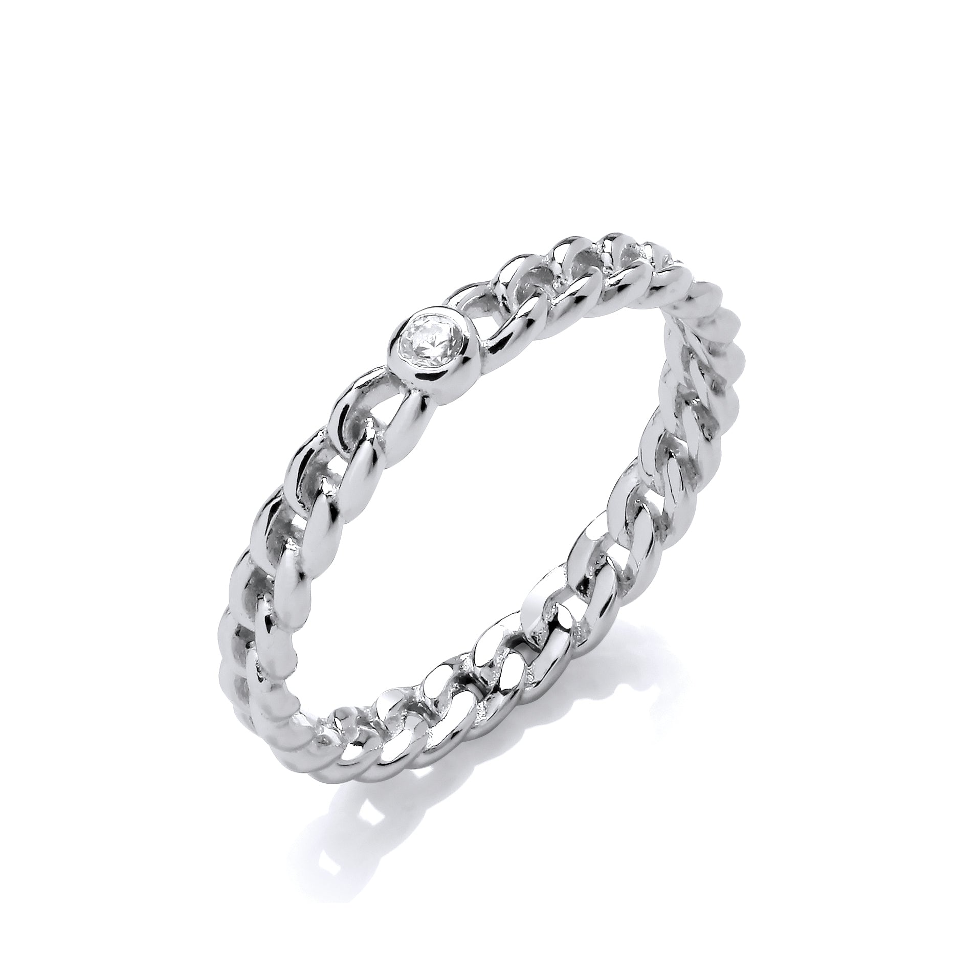 Fashion Silver Single CZ Chain Link Fancy Ring