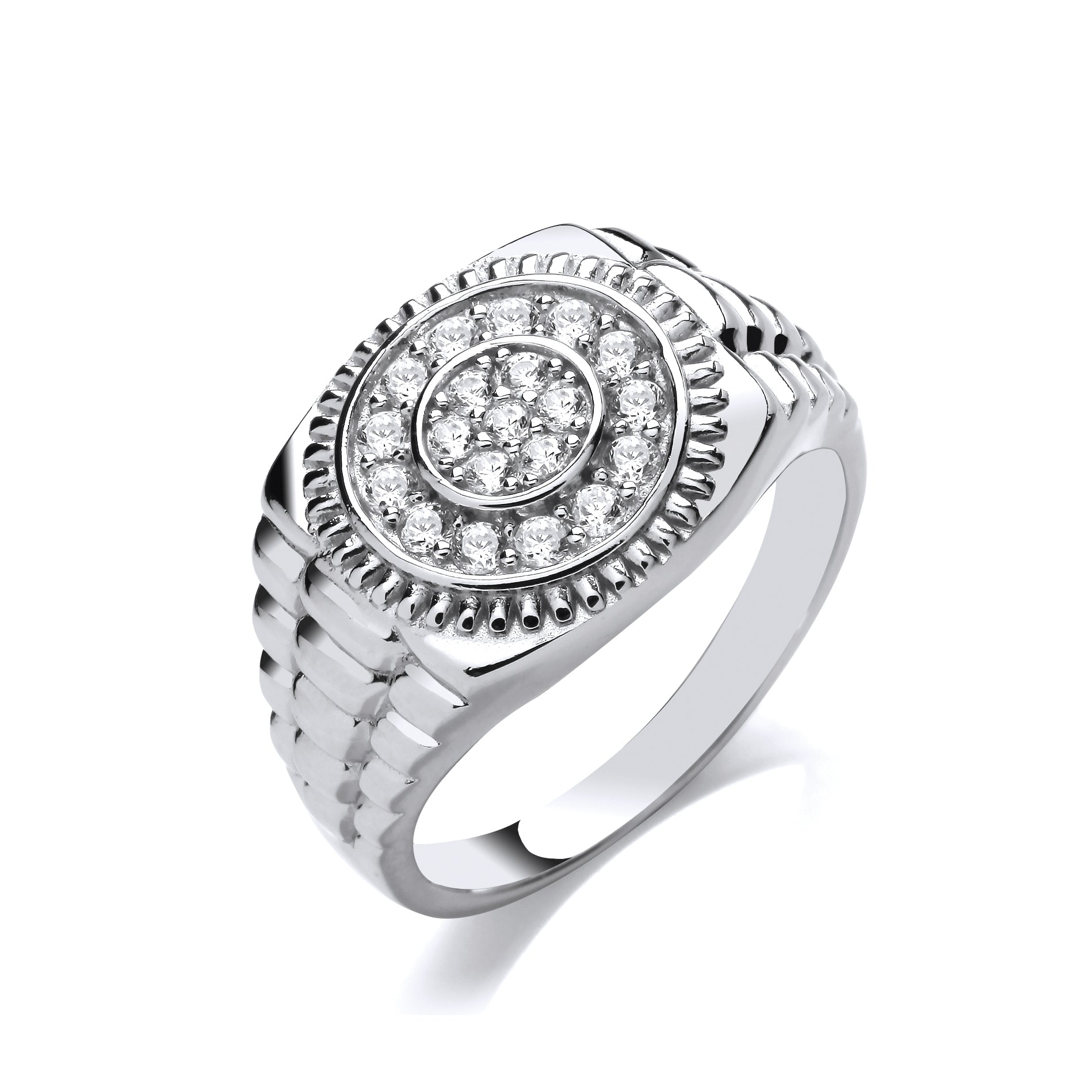 Signet Silver CZ Gents Round Signet Ring With Watch Strap Design