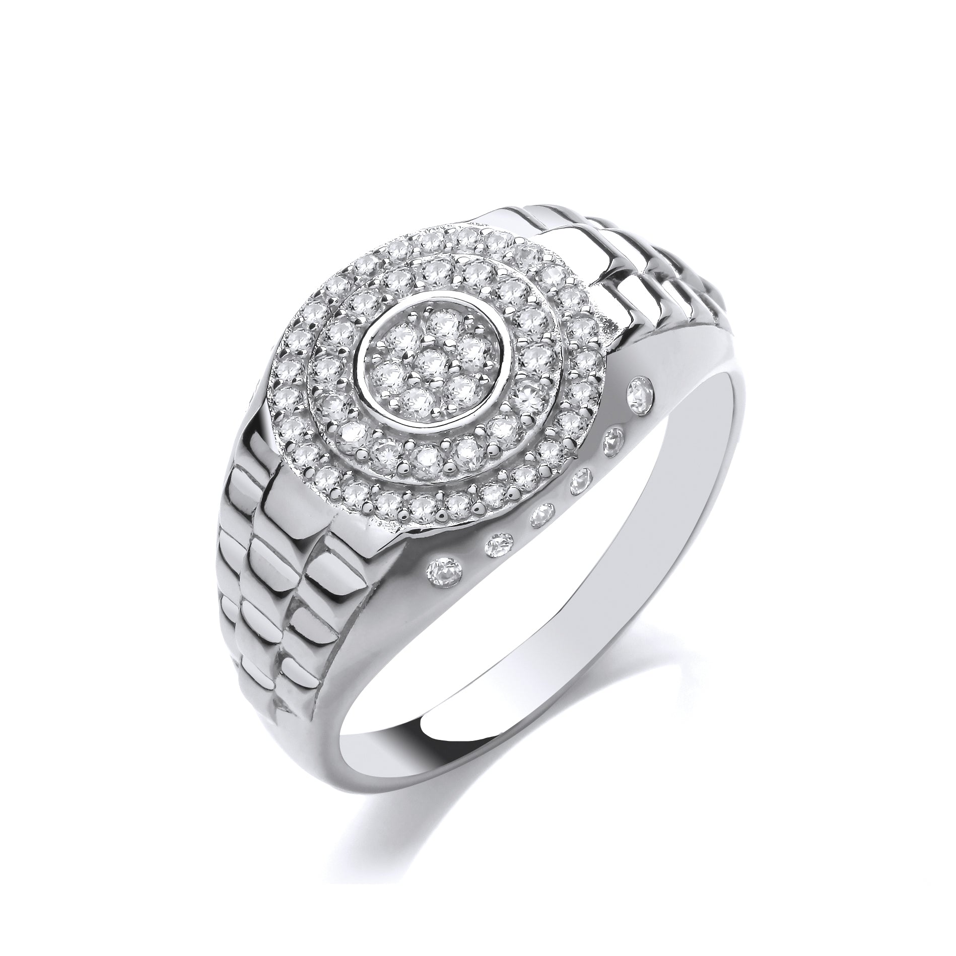 Signet Silver CZ Gents Round Signet Ring With Watch Strap Design