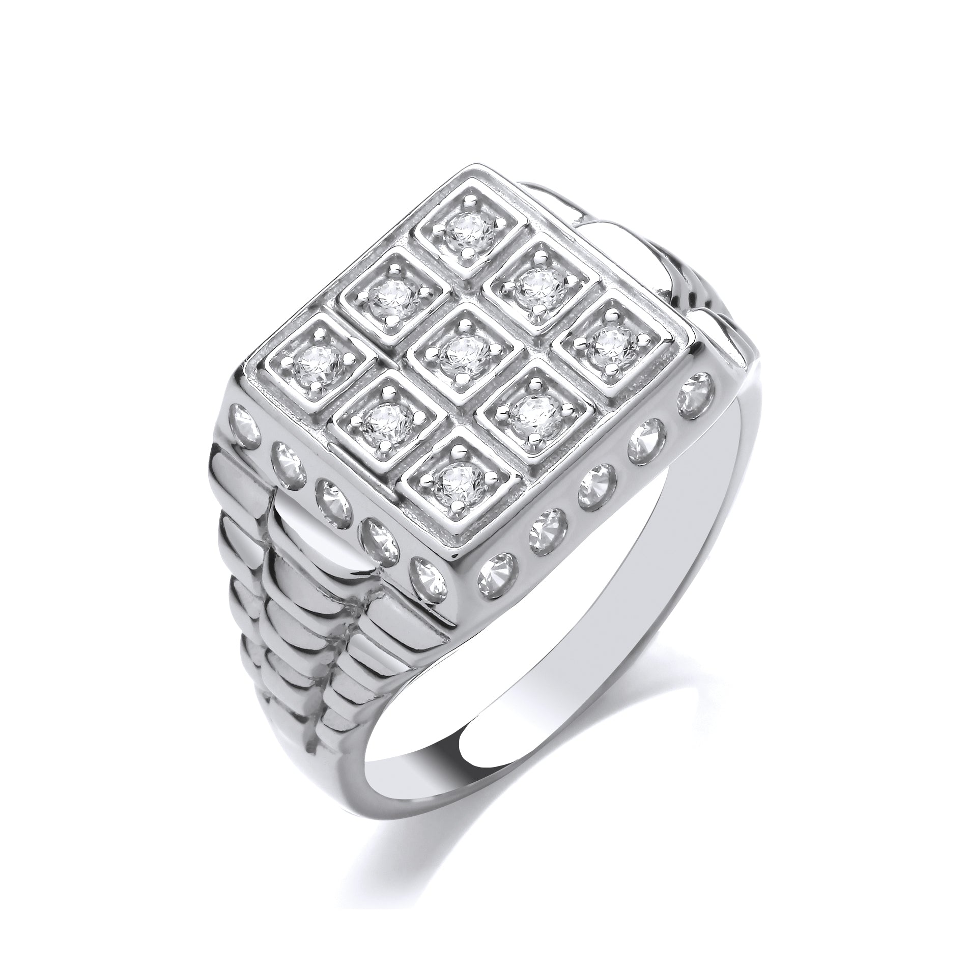 Signet Silver CZ Gents Signet Ring With Watch Strap Design