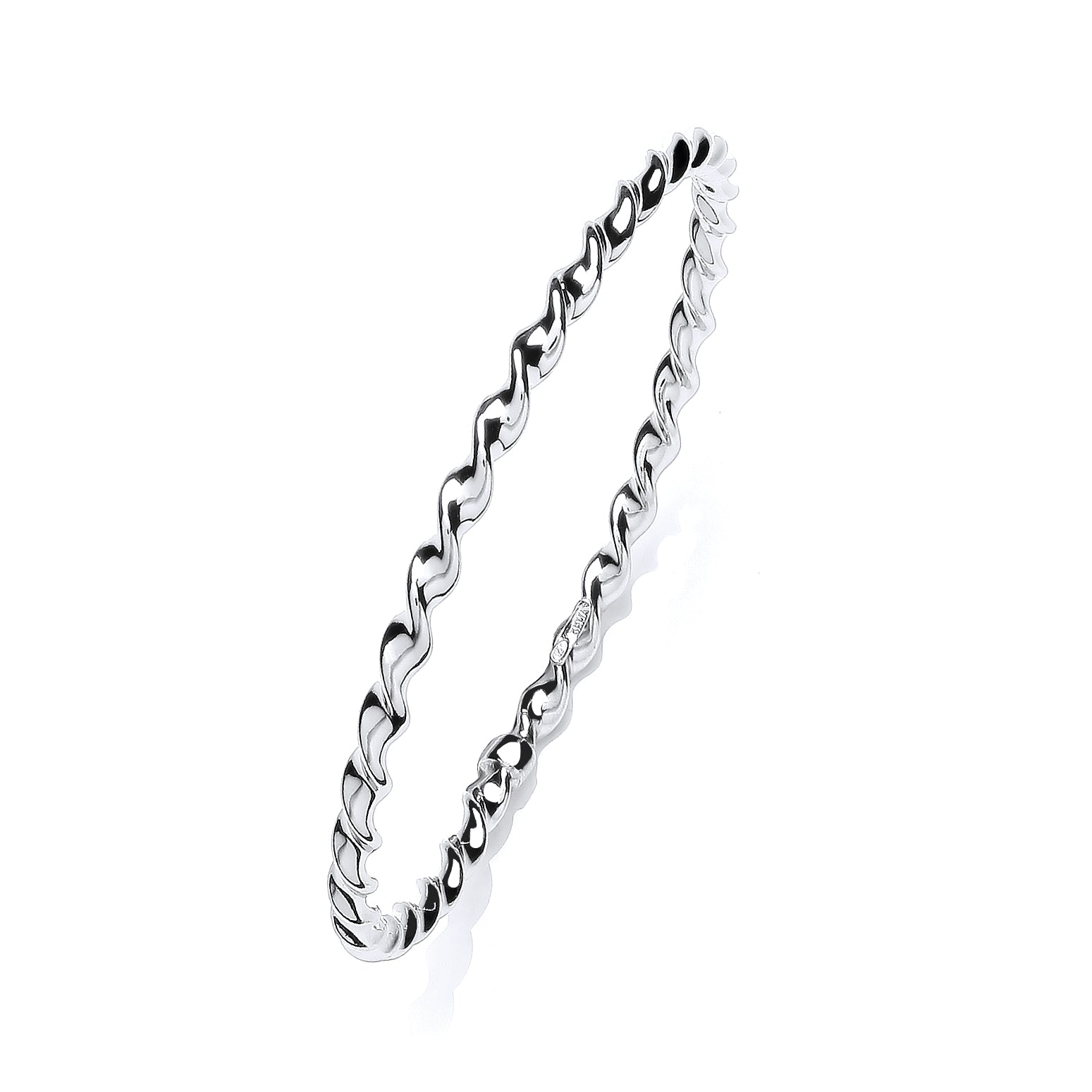 Silver Platinum Plate Twisted Polished Slave Bangle