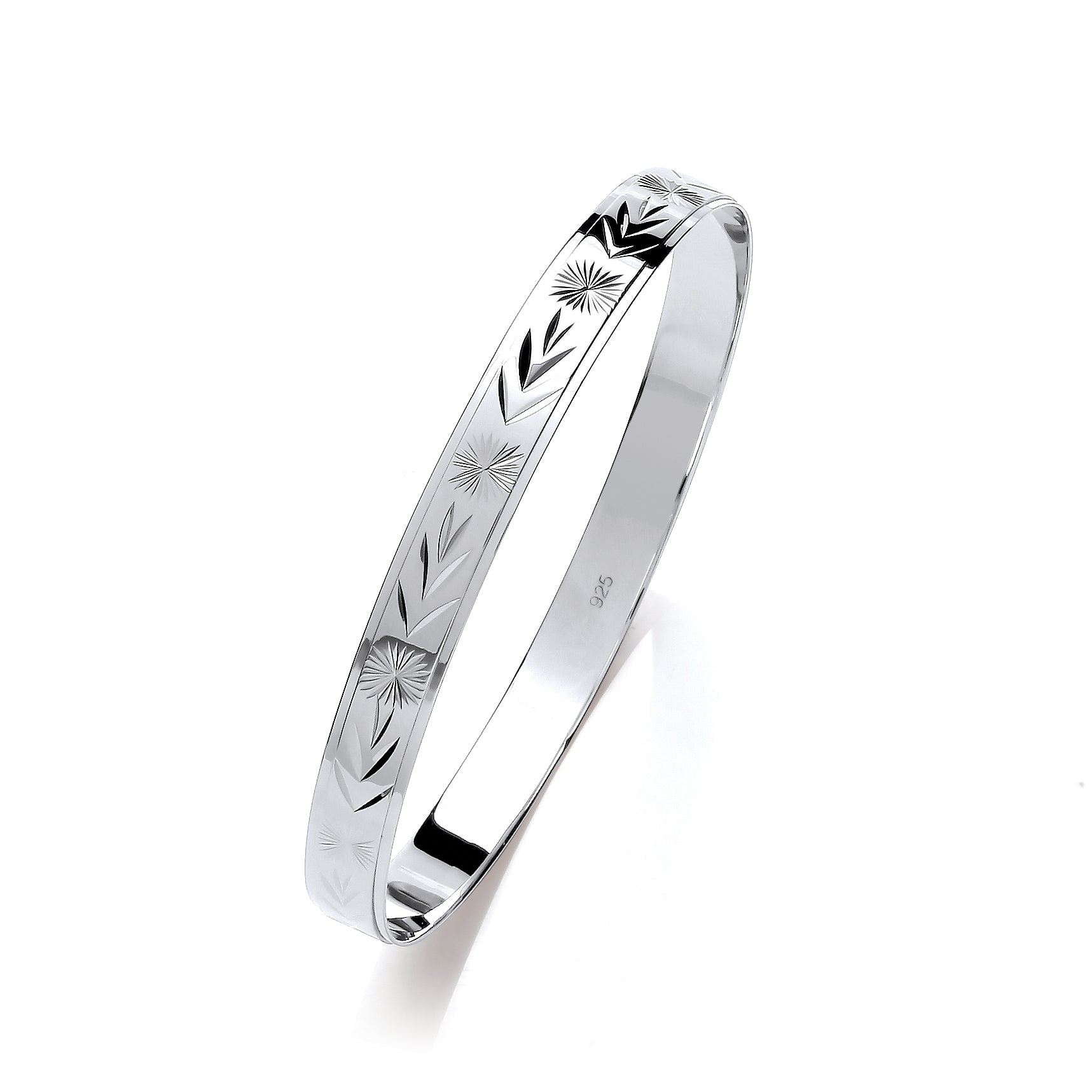 Silver Rhodium Plated Diamond Cut Slave Bangle 60x60