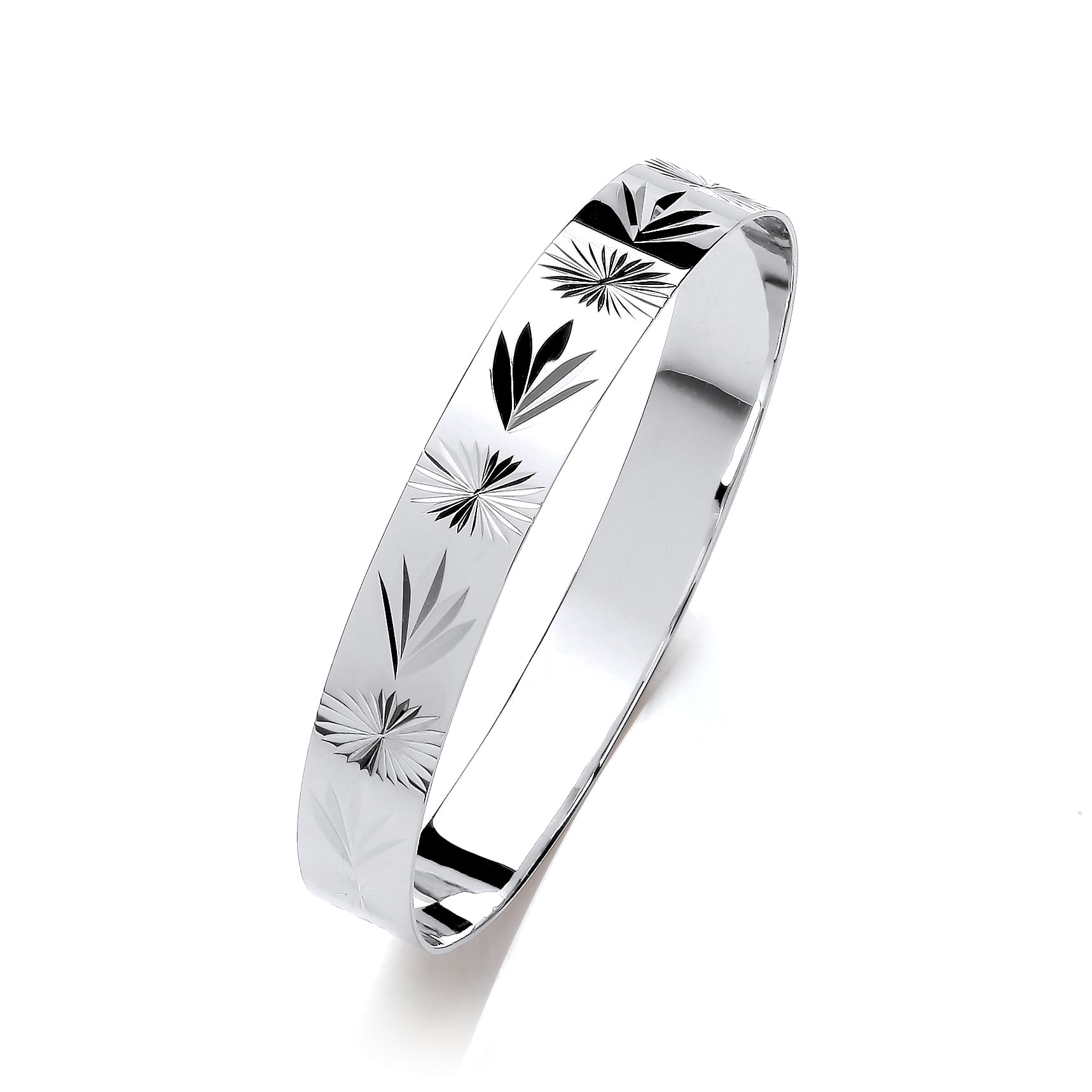 Silver Rhodium Plated Diamond Cut Slave Bangle 60x60