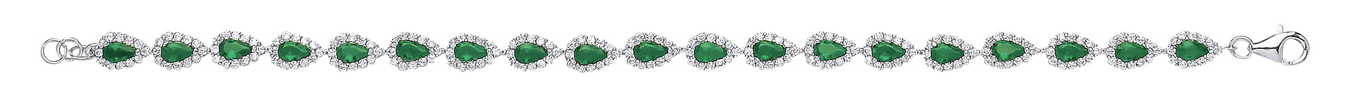 Tennis 925 Sterling Silver CZ & Emerald Pear Shaped Link