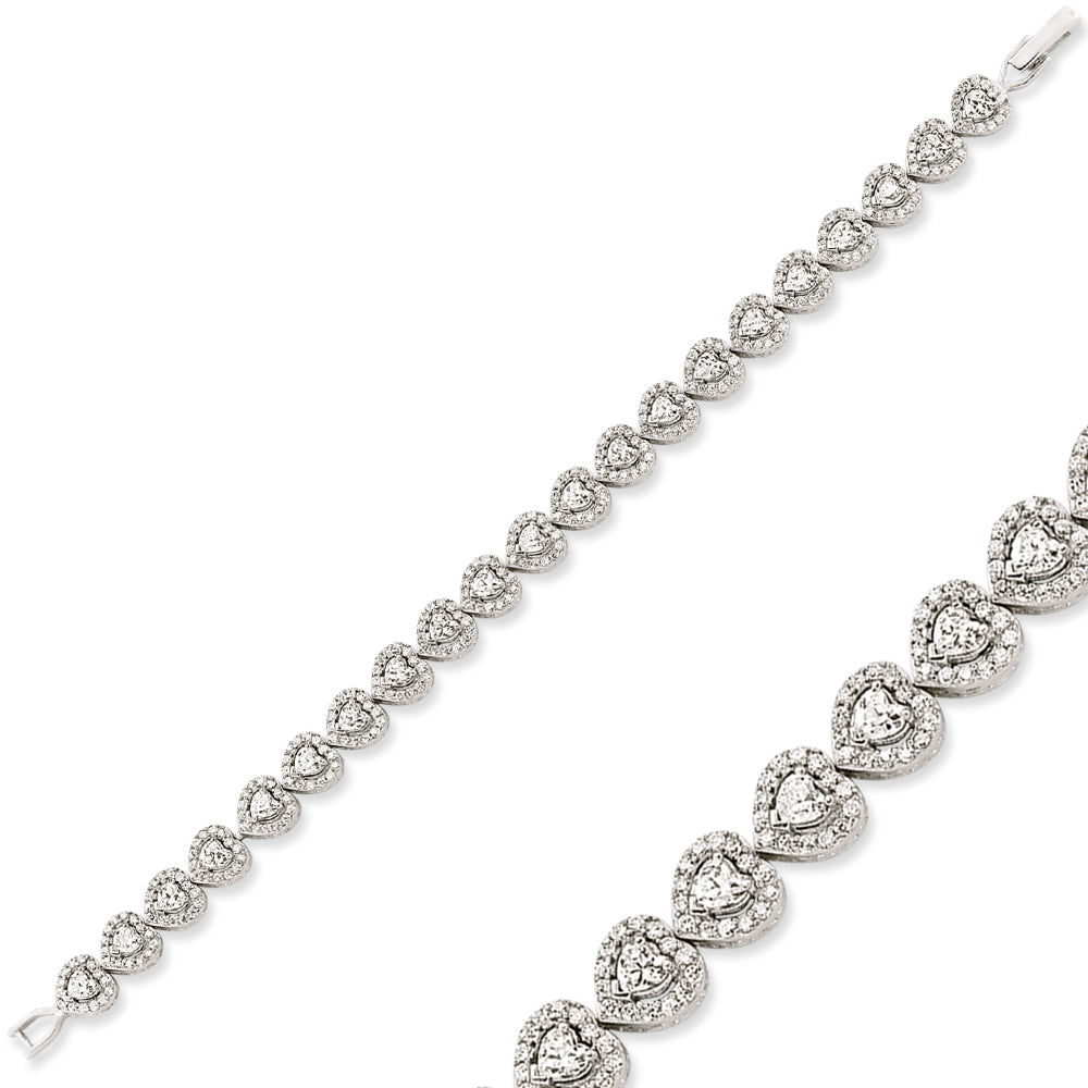 Tennis Silver CZ Clustered Heart Tennis Bracelet