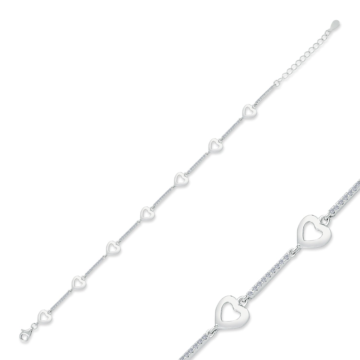 Tennis Silver CZ Fancy Polished Hearts Bracelet