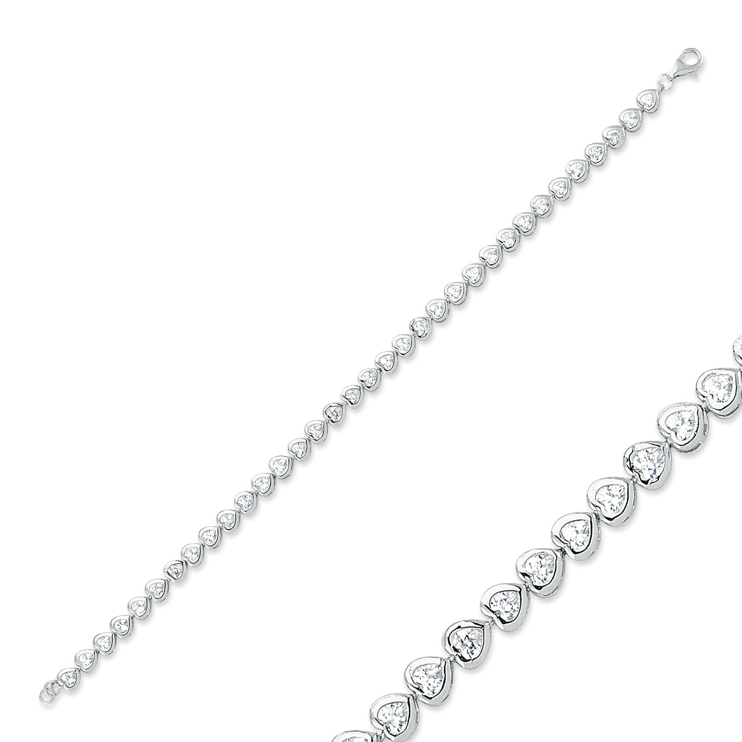 Tennis Silver CZ Love Heart Tennis Bracelet
